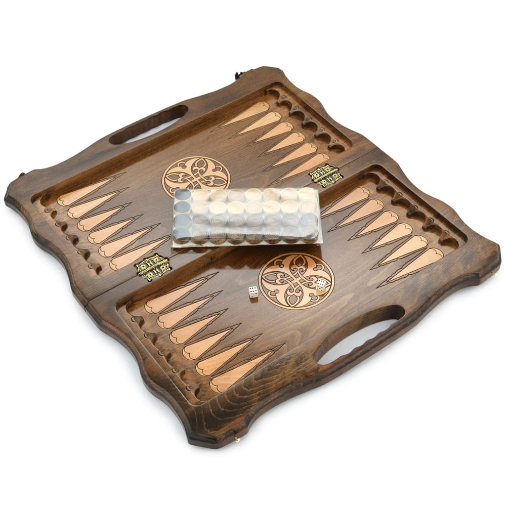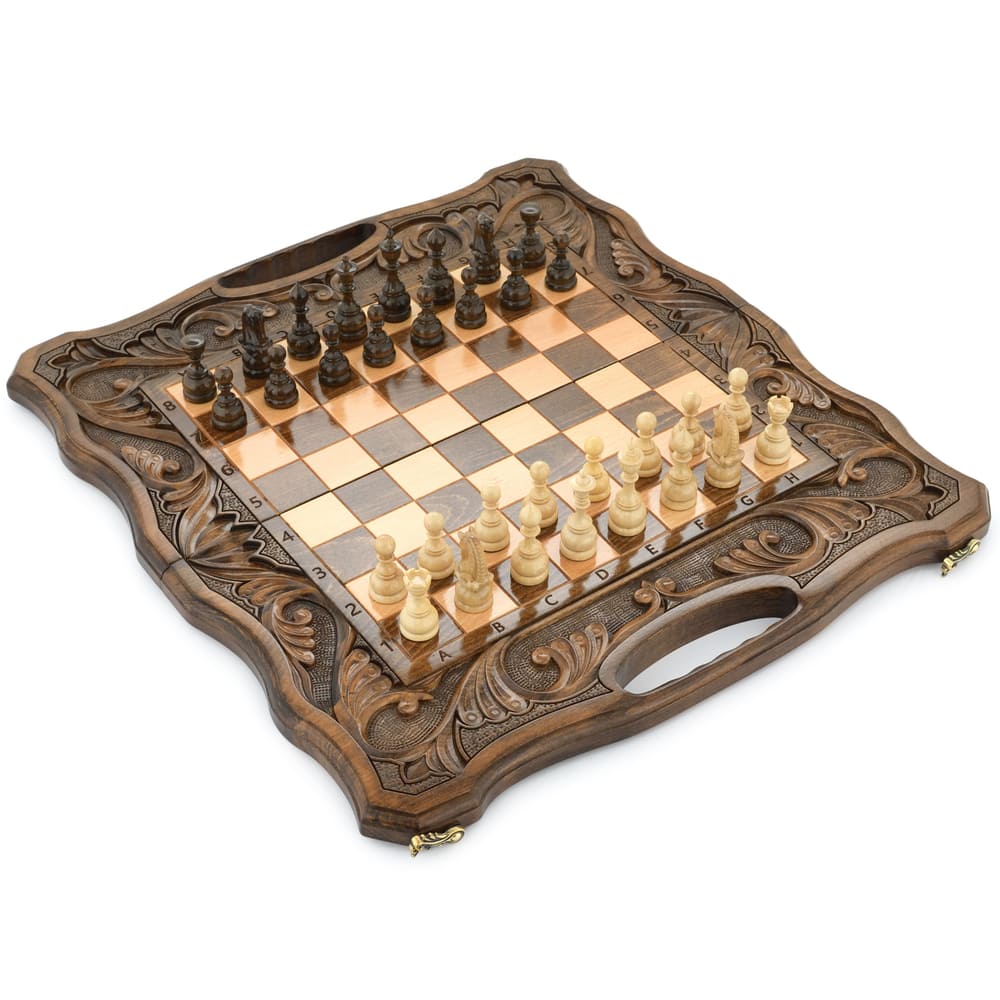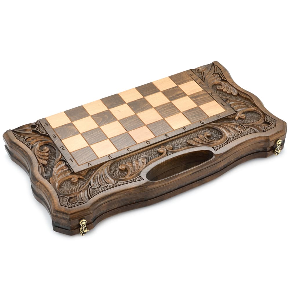 доска для игры в шахматы и нарды ручной работы, фишки, фигурки, кости, чехол. |